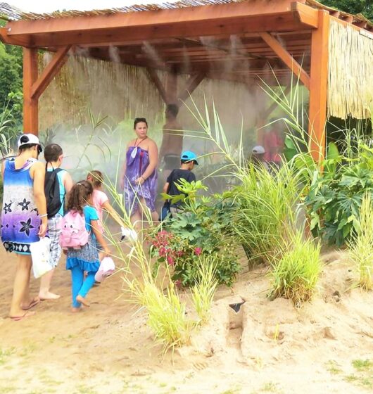 - Une évacuation à proximité du groupe pompe pour les rejets d’eau après l’arrêt des pompes (rejet de 10 litres d’eau à chaque arrêt de la pompe). L’évacuation n’est pas obligatoire pour le mât en lui-même, la brumisation est composée de particules d’eau qui aspergent le public.