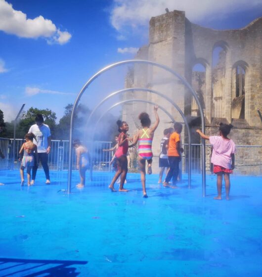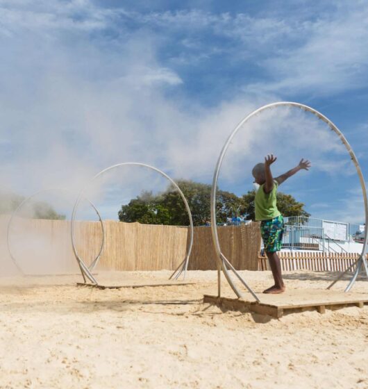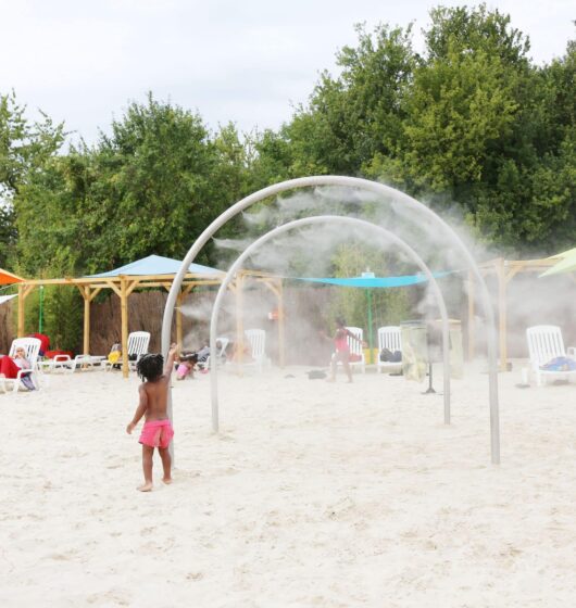- Une évacuation à proximité du groupe pompe pour les rejets d’eau après l’arrêt des pompes (rejet de 10 litres d’eau à chaque arrêt de la pompe). L’évacuation n’est pas obligatoire pour le mât en lui-même, la brumisation est composée de particules d’eau qui aspergent le public.