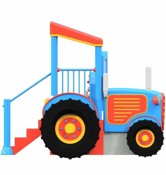 Qui n’a jamais rêvé, étant enfant, de conduire un tracteur ? Sur cette plateforme de jeux aquatiques, les enfants vont pouvoir en explorer un mais il ne démarrera pas. Par contre, il va bien les éclabousser !